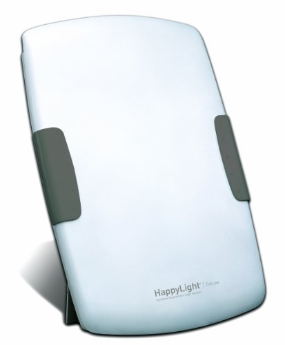 Although our lives, health and well-being are dependent upon the sun, most of us do not get enough sunshine every day. Bright light is used for alleviating symptoms associated with Seasonal Affective Disorder (SAD), jet lag, shift work fatigue, seasonal change and insomnia. Get your daily dose of sunshine and boost your body's sense of well-being, alertness and energy with the HappyLight Deluxe Energy Lamp. It provides up to 10,000 LUX of Natural Spectrum Daylight, includes 2 patented Verilux bulbs, a convenient carrying handle, and both desktop and wall mount options. Ultra lightweight at just 8 pounds. High performance ballast. 72 watts, UL listed. Provides soothing glare free, flicker free light, low emi, compact euro-style design.